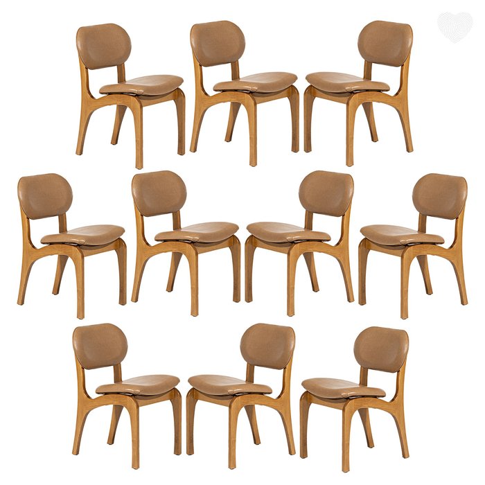 Kit 10 Cadeiras de Jantar Estofada Rafine Madeira Castanho Impermeável Marrom