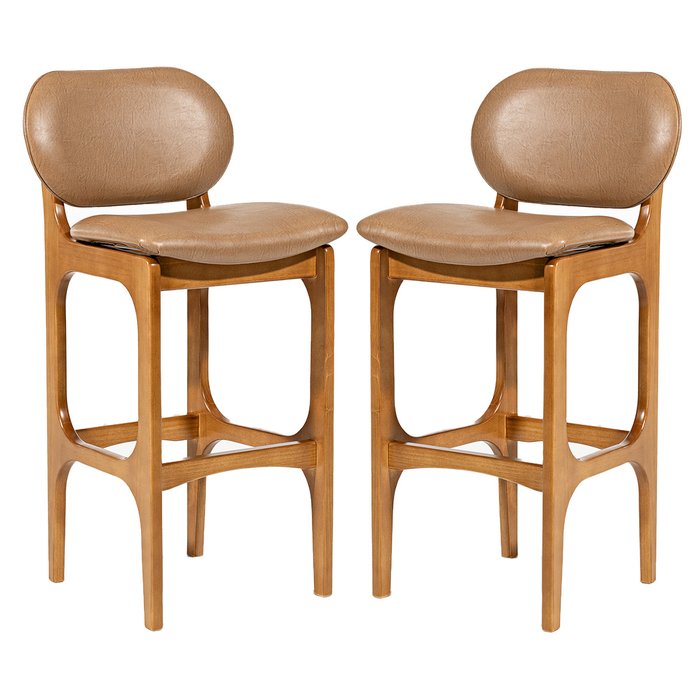 Kit 2 Banquetas Alta Estofada Rafine Madeira Castanho Impermeável Marrom