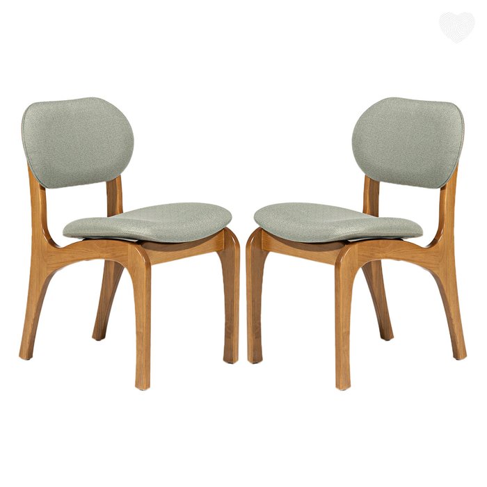 Kit 2 Cadeiras de Jantar Estofada Rafine Madeira Castanho Linho Verde