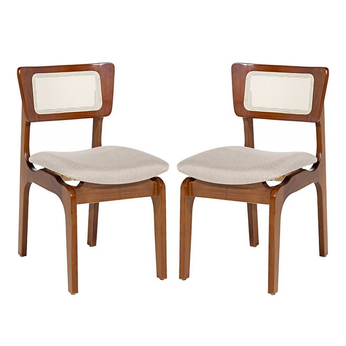 Kit 2 Cadeiras de Jantar Portugal em Madeira Imbuia Encosto Tela Rattan Linho Bege M58 Imbuia