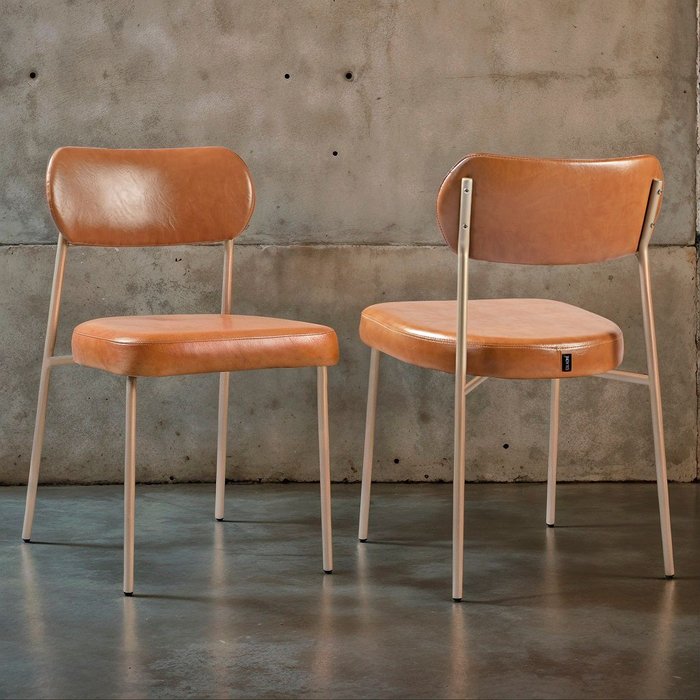 Kit 2 Cadeiras Sala de Jantar Couro Sintético Design Aço Carbono Lavinia Couro Marrom/Champagne