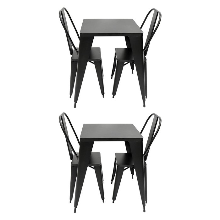 Kit 2 Conjuntos de Mesa Design Tolix Iron Industrial Preto 2 Cadeiras