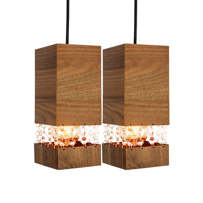 Kit 2 Pendente Luna em Madeira e Cristais Amêndola Clara – Bivolt, Soquete E27