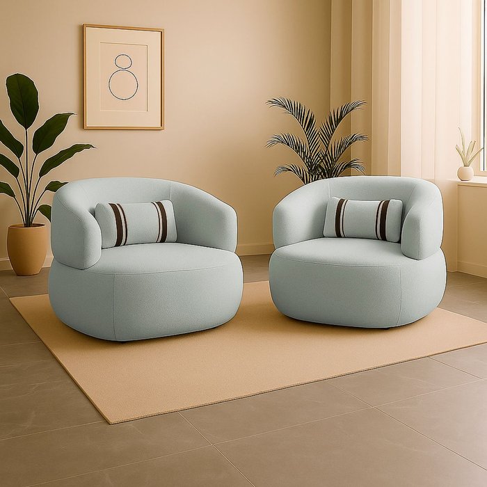 Kit 2 Poltrona Orgânica Chloe Boucle Verde Redonda Decorativa com Almofada Plumante - Arkell