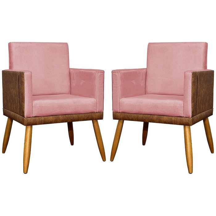 Kit 2 Poltronas Decorativa para Sala Recepção Escritório Consultório Lis Corino Peroba e Suede Rosa