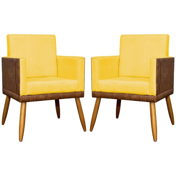 Kit 2 Poltronas Decorativa para Sala Recepção Escritório Consultório Lis Corino Peroba e Suede Amarelo
