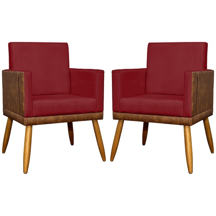 Kit 2 Poltronas Decorativa para Sala Recepção Escritório Consultório Lis Corino Peroba e Suede Vermelho