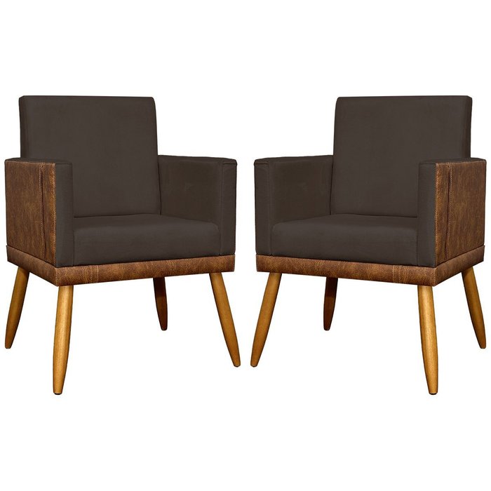 Kit 2 Poltronas Decorativa para Sala Recepção Escritório Consultório Lis Corino Peroba e Suede Marrom