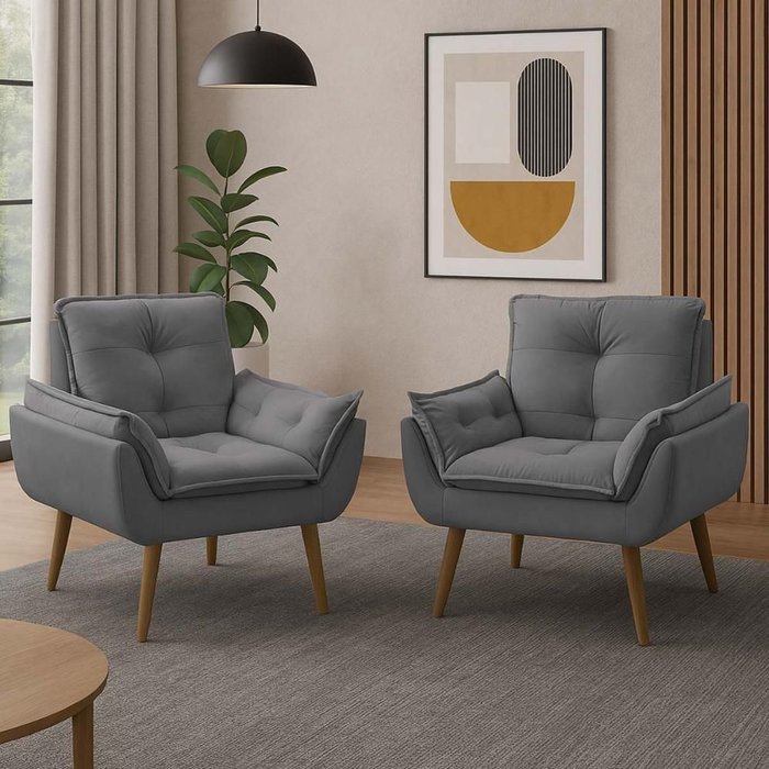 Kit 2 Poltronas Decorativas Opala Recepção Luxo Confortável Cinza Chumbo