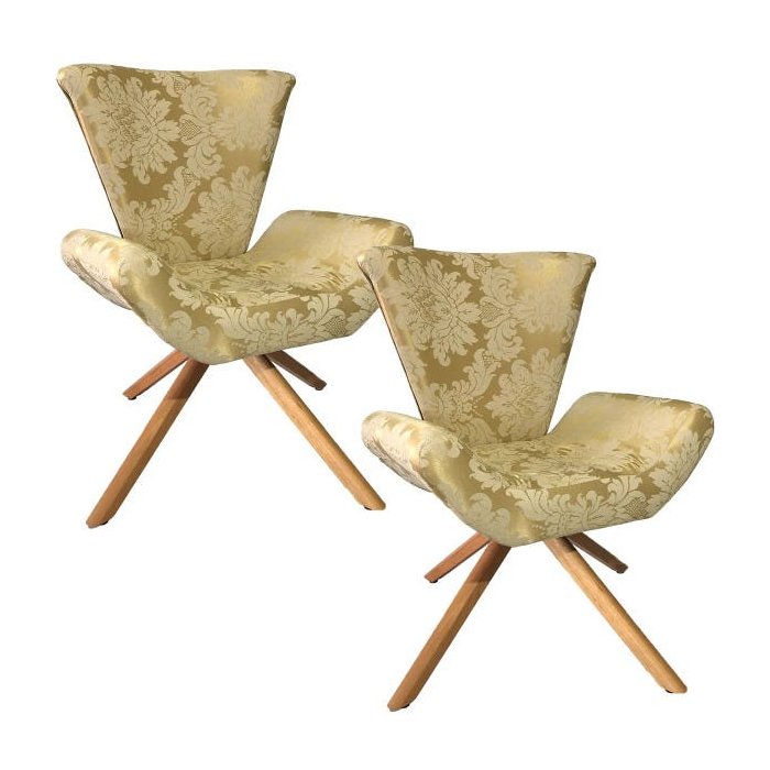 Kit 2 Poltronas Elegance Base Giratória Ferro e Madeira Jacquard Dourado