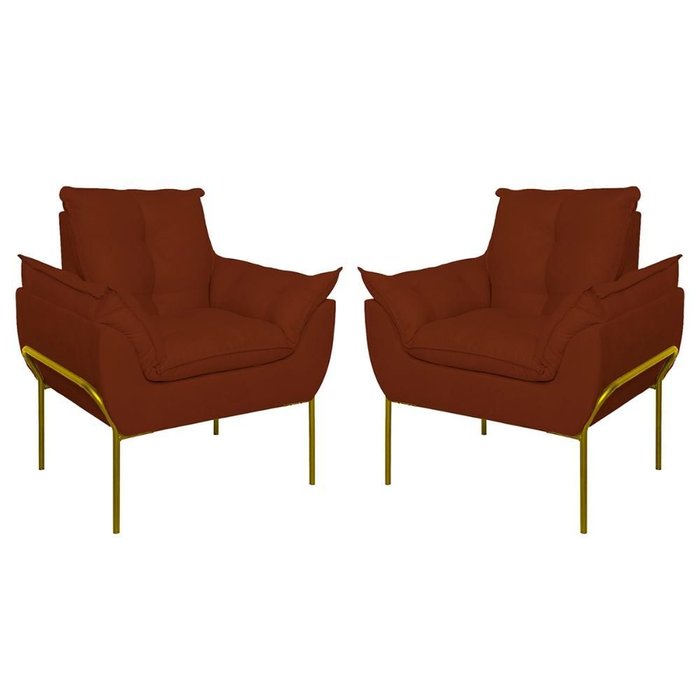Kit 2 Poltronas Luxo Base Reforçada Metal Dourado Cor:terracota terracota