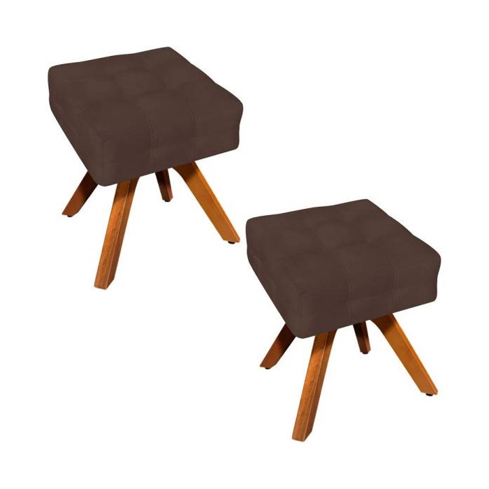 Kit 2 Puffs Giratório Elisa Suede - Marrom Marrom