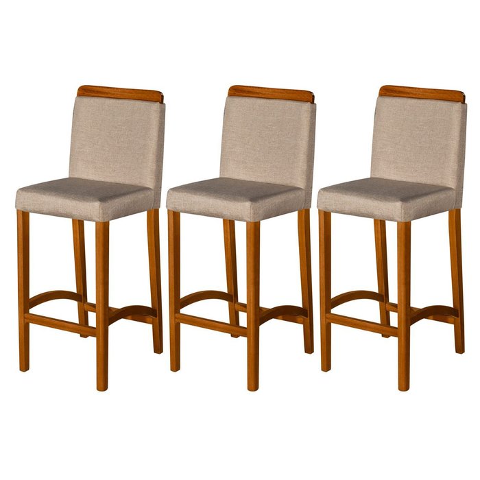 Kit 3 Banquetas Dubai com Puxador em Madeira Maciça Reflorestada Moveis House Bege