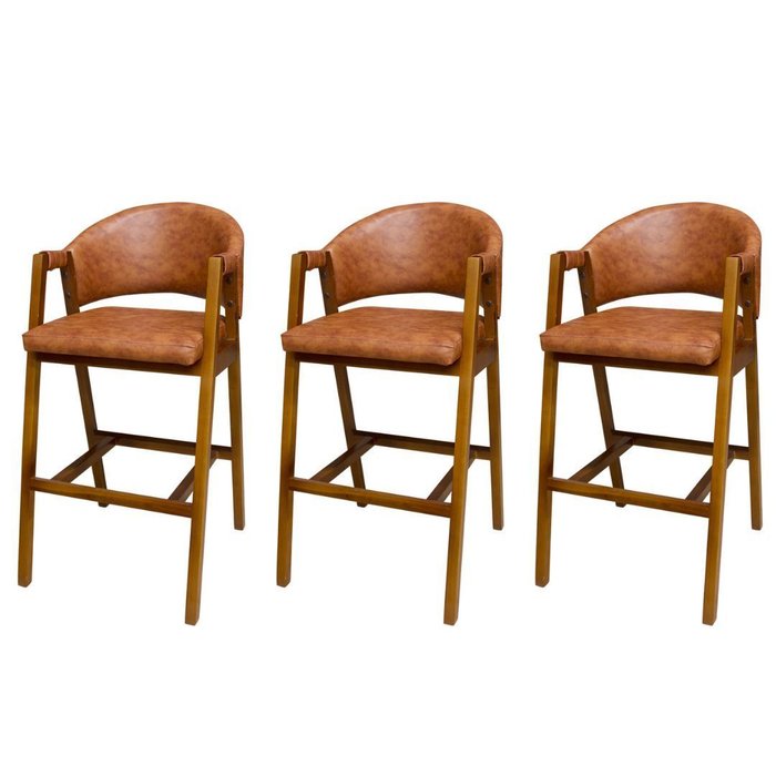 Kit 3 Banquetas Madeira Flora Gourmet-assento Sintético Ocre-gatmagazine