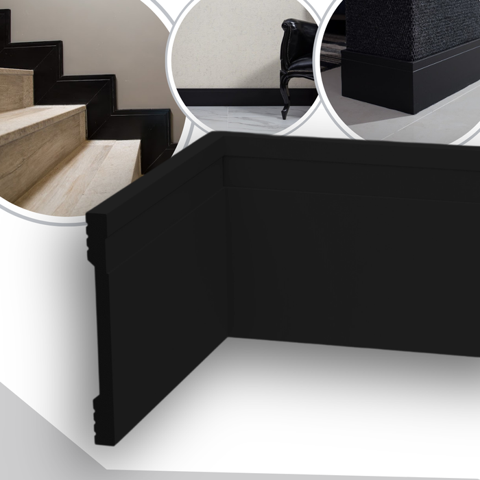 Kit 3 Barras Rodapé de Poliestireno 7 Cm Altura Preto Frisado (10mm X 2 Metros)