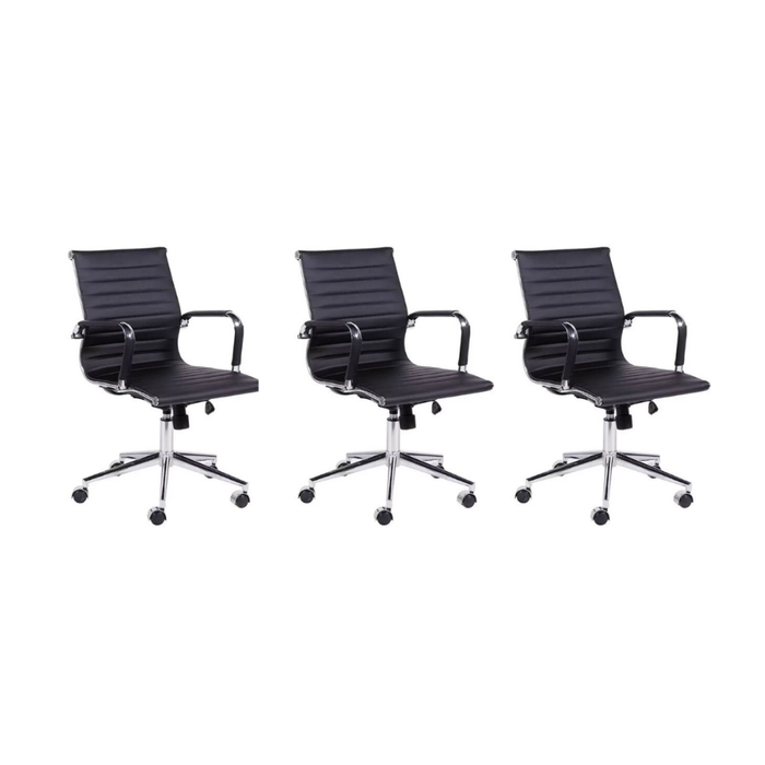 Kit 3 Cadeiras de Escritório Esteirinha Diretor Preta em Couro Sintético - Base Giratória Cromada Be