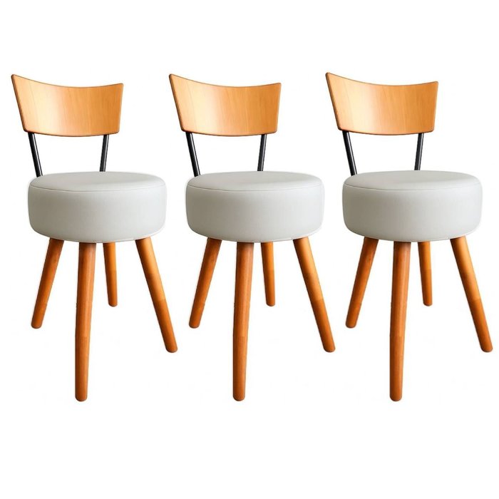 Kit 3 Cadeiras Jantar Cozinha Estofada Branca com Encosto Madeira Urban