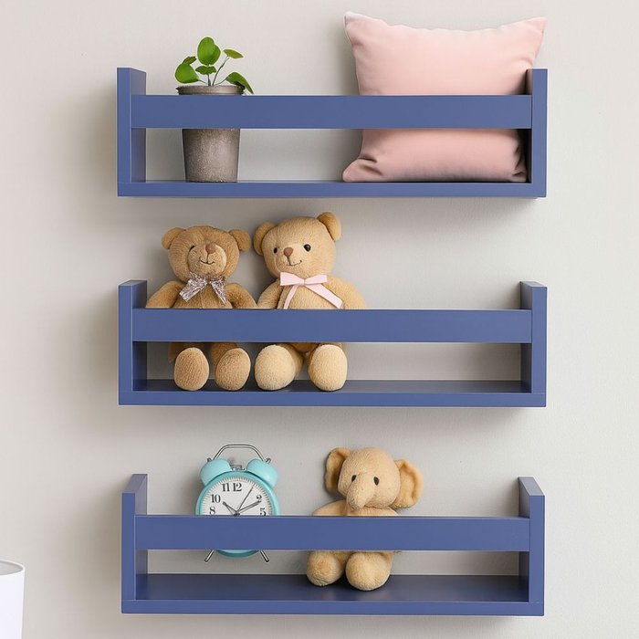 Kit 3 Prateleira 60cm Azul Livro Revista Infantil Parede