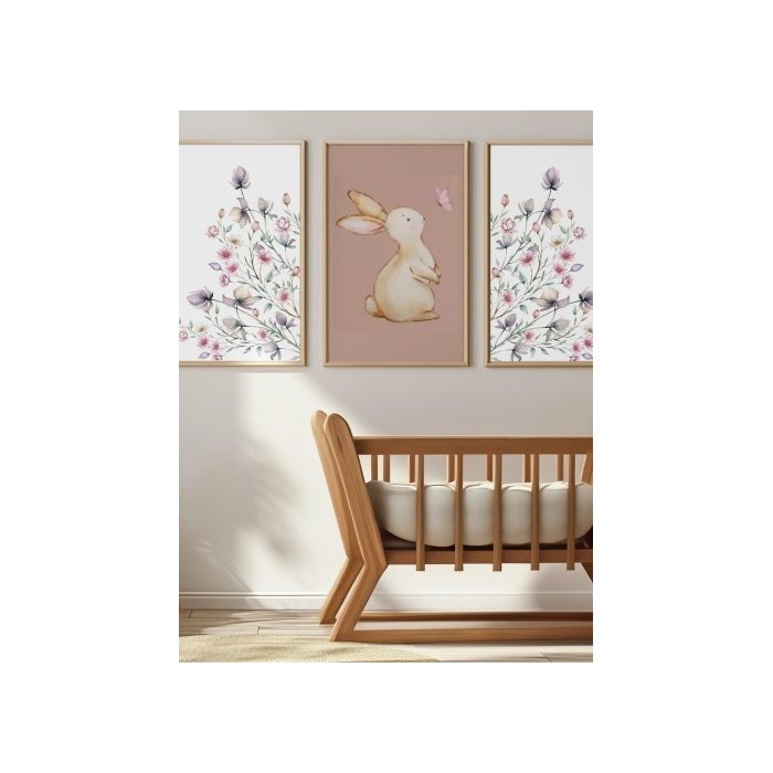 Kit 3 Quadros Decorativos Infantil Rosa Coelho No1