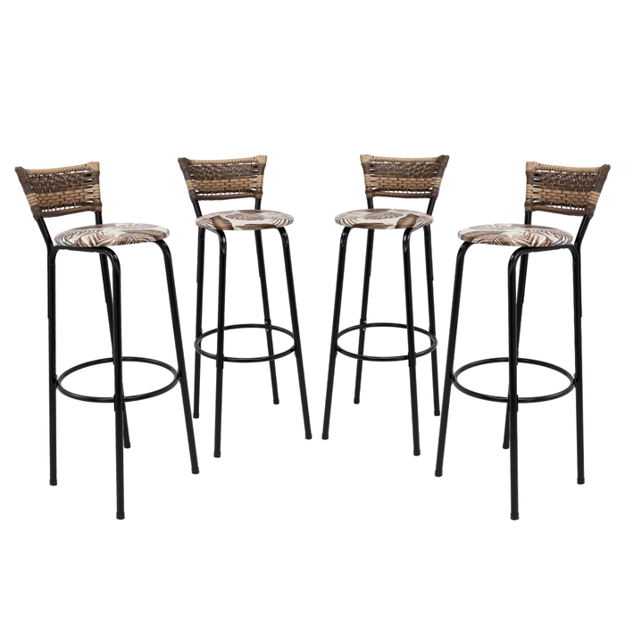 Kit 4 Banquetas 80cm para Balcão Ilha Bancada Área Gourmet Encosto em Junco Banco Itagold Assento Floral Marrom