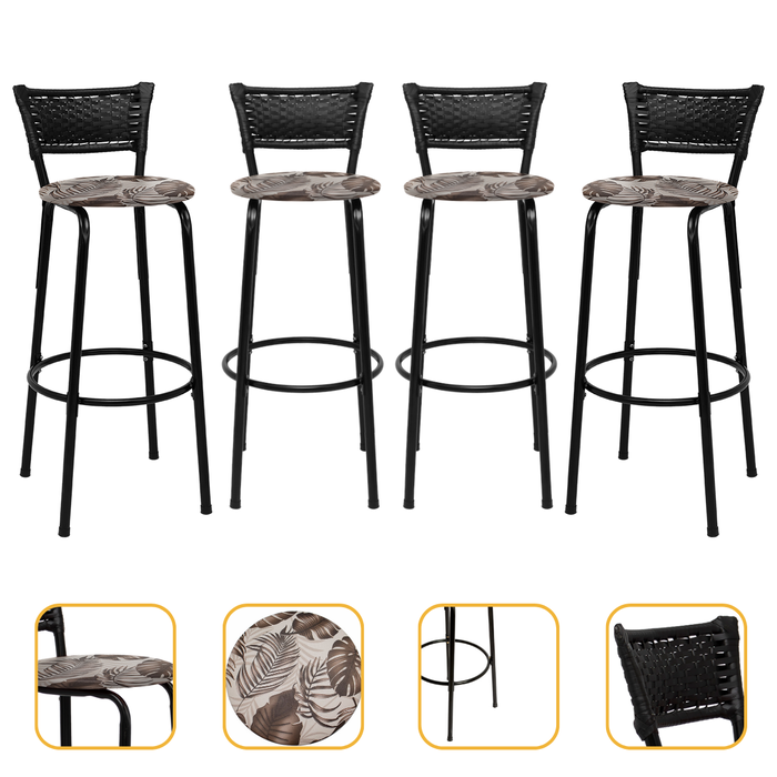 Kit 4 Banquetas para Bancada Banco Alto Junco Preto Balcão Cozinha Gourmet Bar Área de Lazer Piscina Floral Marrom