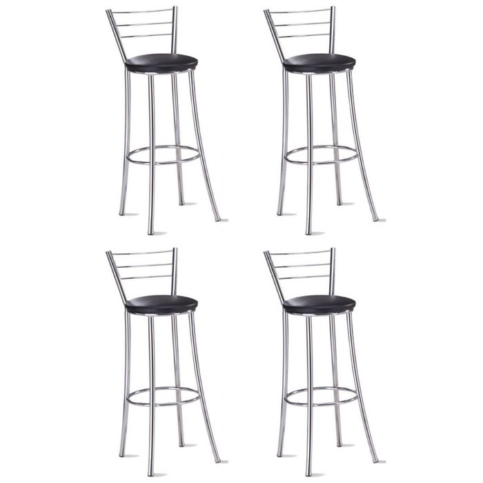 Kit 4 Banquetas para bancada Grazi cromada-tamanho médio-assento preto