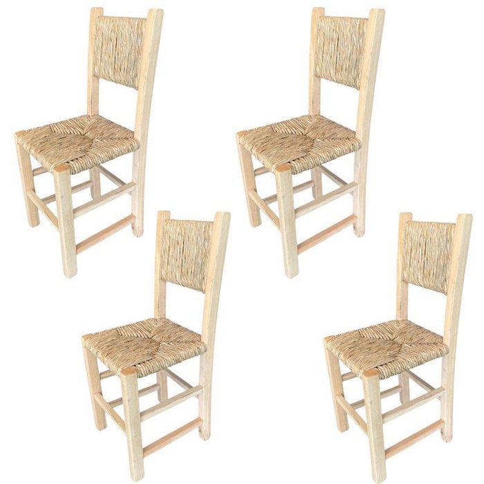 Kit 4 Cadeiras com Assento e Encosto de Palha