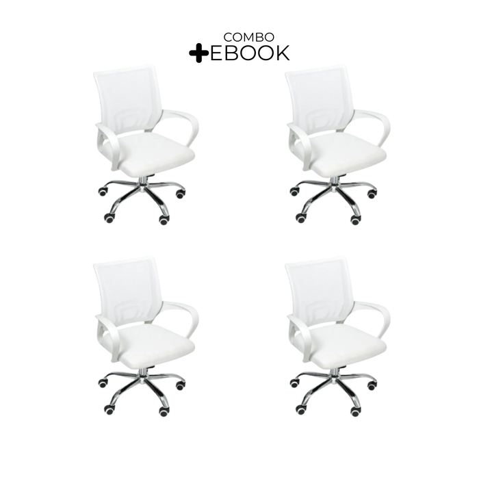 Kit 4 Cadeiras de Escritório Begonia Mesh Ergonômica Branco + E-book