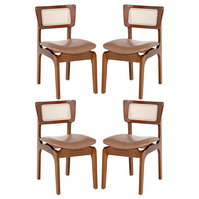 Kit 4 Cadeiras de Jantar Portugal em Madeira Imbuia com Tela Rattan Impermeável Caramelo L85