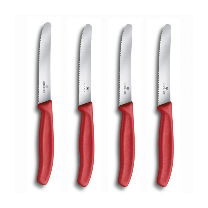 Kit 4 Facas Victorinox Swiss Classic - Lâmina Serrilhada Extremamente Afiada - 11 Cm - Vermelha - 6.
