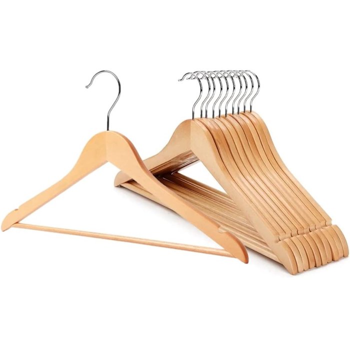 Cabide Livon é fabricado em madeira com gancho de metal, o que faz dele um modelo bem resistente e ideal para roupas pesadas como casacos, ternos. Seu design clássico é perfeito para quem gosta de qualidade e elegância, sendo a melhor maneira para organizar lojas e residências, quarto, guarda-roupa e closet. Fabricado em alta qualidade possui um acabamento perfeito que não vai puxar ou desfiar suas peças.