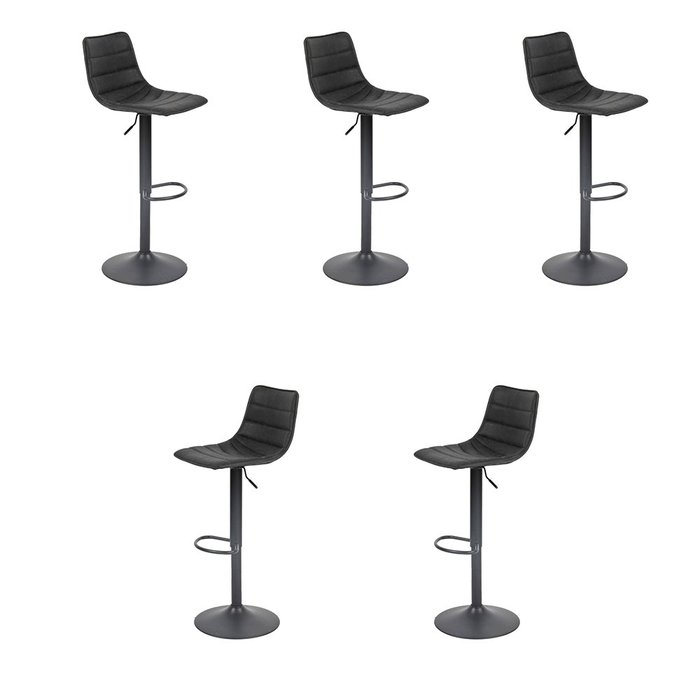 Kit 5 Banquetas Decorativas Travis Pu com Regulagem de Altura Base Disco C/apoio para Os Pés Preto G Preto