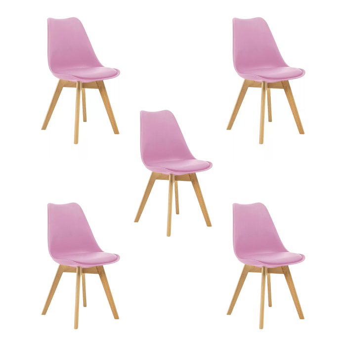 Kit 5 Cadeiras Estofadas Saarinen Wood Pés de Madeira Rosa