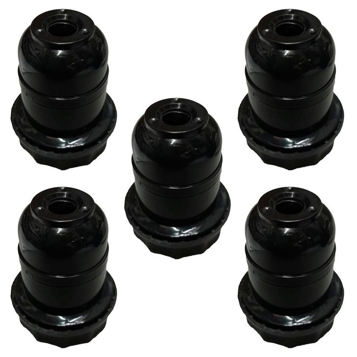Kit 5 Soquete E-27 Abajur Plastico Preto Preto