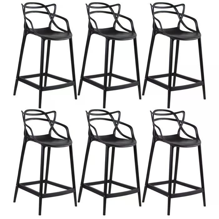 Kit 6 Banquetas Altas 76 Allegra Master Cozinha Preto Preto