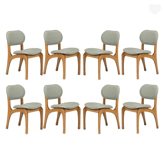 Kit 8 Cadeiras de Jantar Estofada Rafine Madeira Castanho Linho Verde