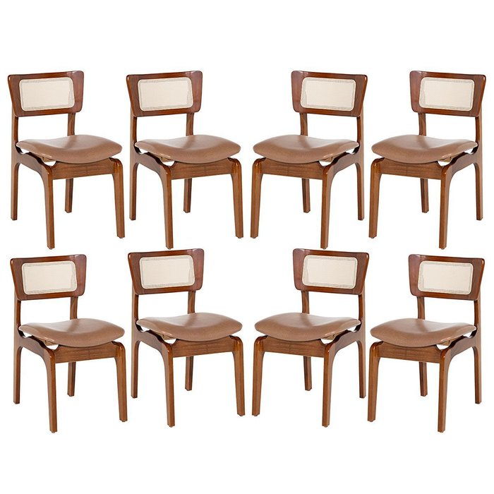 Kit 8 Cadeiras de Jantar Portugal em Madeira Imbuia com Tela Rattan Impermeável Caramelo L85