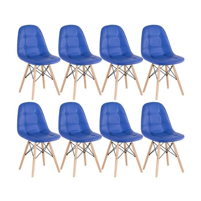 Kit 8 Cadeiras Eames Eiffel Botonê - Azul - Base de Madeira Clara Multicolorido