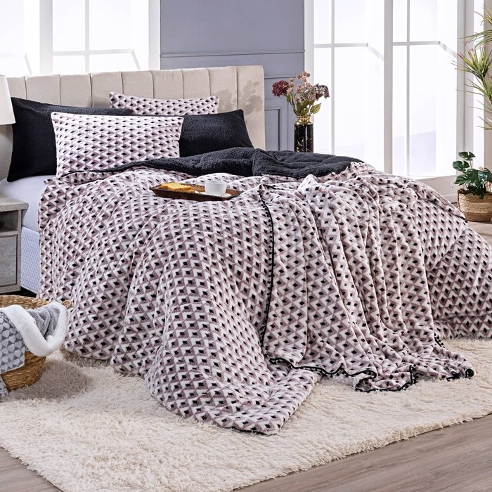 Kit Coberdrom Nevada Estampado Losangos Preto Solteiro 02 Peças - Dupla Face Manta e Sherpa Colorida Preto