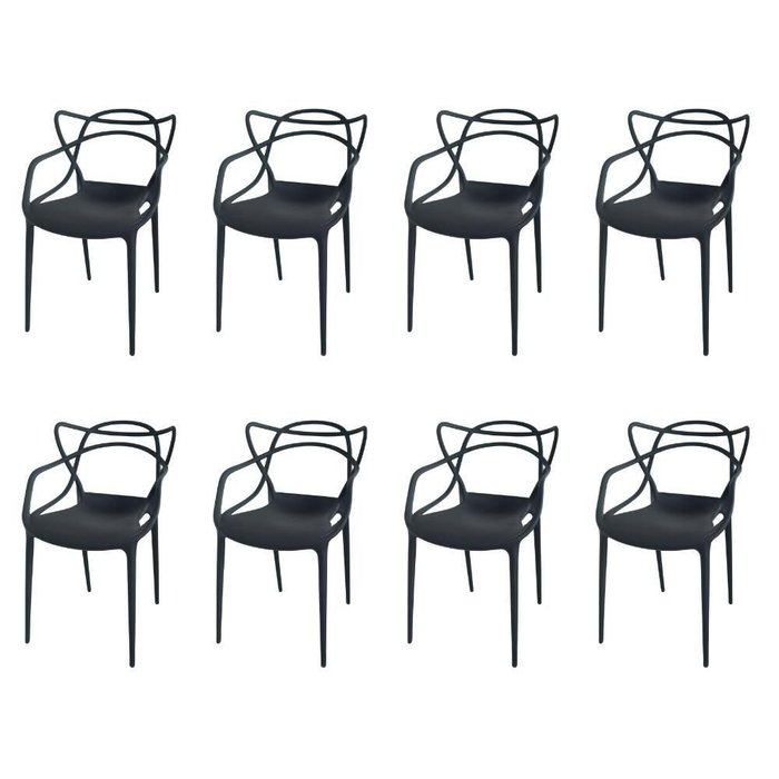 Kit com 8 Cadeiras Allegra Ana Maria Masters Jantar Cozinha Jardim Empilhável Preta