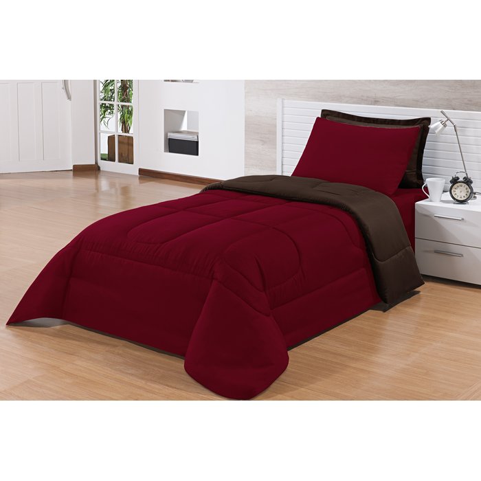 Kit Edredom Solteiro 4 Peças Pérola Vermelho/tabaco