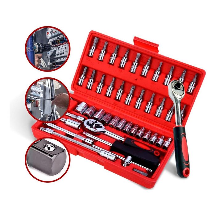 Não perca a oportunidade de elevar suas habilidades de reparo e manutenção com o Kit Jogo Soquete em Aço Catraca Chaves com Maleta 46 Peças. Adquira o seu agora mesmo e tenha todas as ferramentas necessárias ao seu alcance.