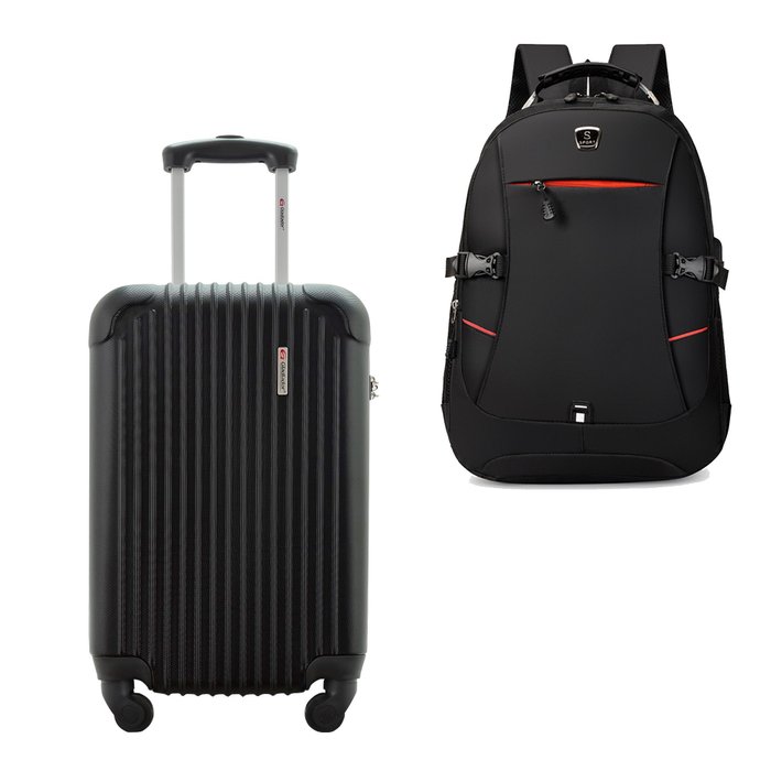 Kit Mala de Bordo 10kg Viagem Rígida Rodas 360º Abs Cadeado Segredo Gladiador A2mb com Mochila Execu