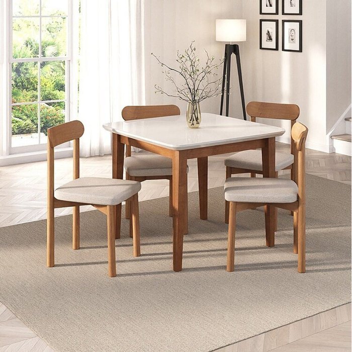Kit Mesa de Jantar Tangará 95cm e 4 Cadeiras Pitanga CabeCasa MadeiraMadeira