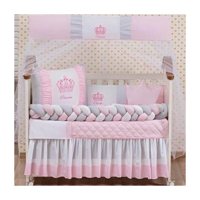 Kit Protetor Berço Trançado 11 Peças Menina Princesa Rosa