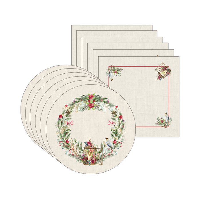 Kit Sousplat + Guardanapo Natal Lanterna - 6 Peças - com Base