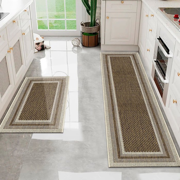 Kit Tapete Passadeira 2 Pç Cozinha Antiderrapante Js Mol M87 M87 BEGE MARROM JUTA SISAL