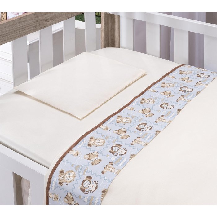 Lençol de Berço para Bebe Menino Azul 3 Peças Algodão Safari Animais:azul Animais Balão