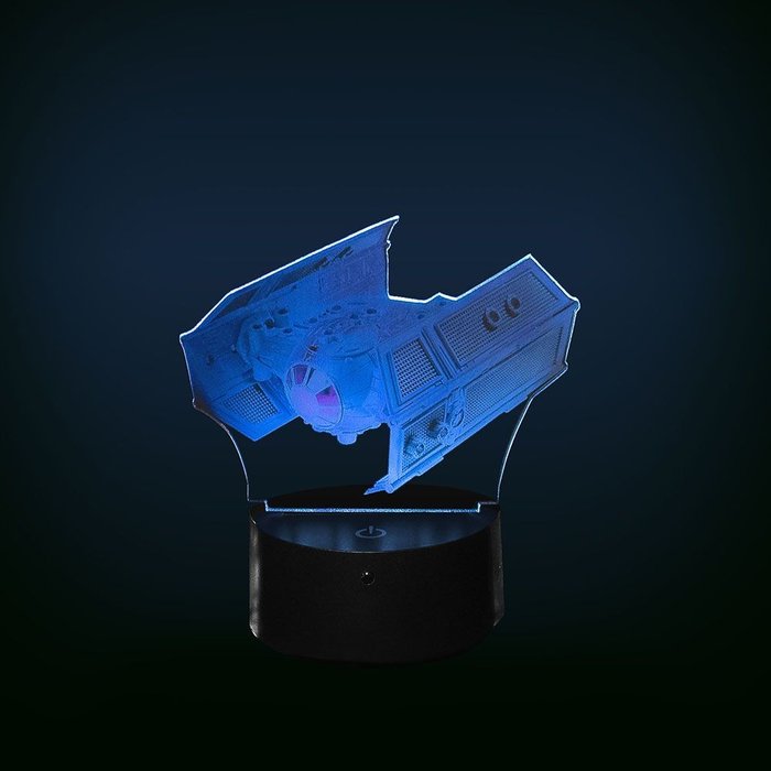 Diretamente do mundo de Star Wars, a nave espacial militar foi a inspiração para essa luminária, fabricada em acrílico cristal com impressão digital. Sua base de led possui 16 cores diferentes, deixando o ambiente ainda mais divertido. Acompanha cabo USB e controle, que contém: botão liga/desliga, 4 efeitos diferentes para as luzes e controle de intensidade da cor. Também pode ser usada com fonte bivolt e com pilhas (não acompanham o produto).