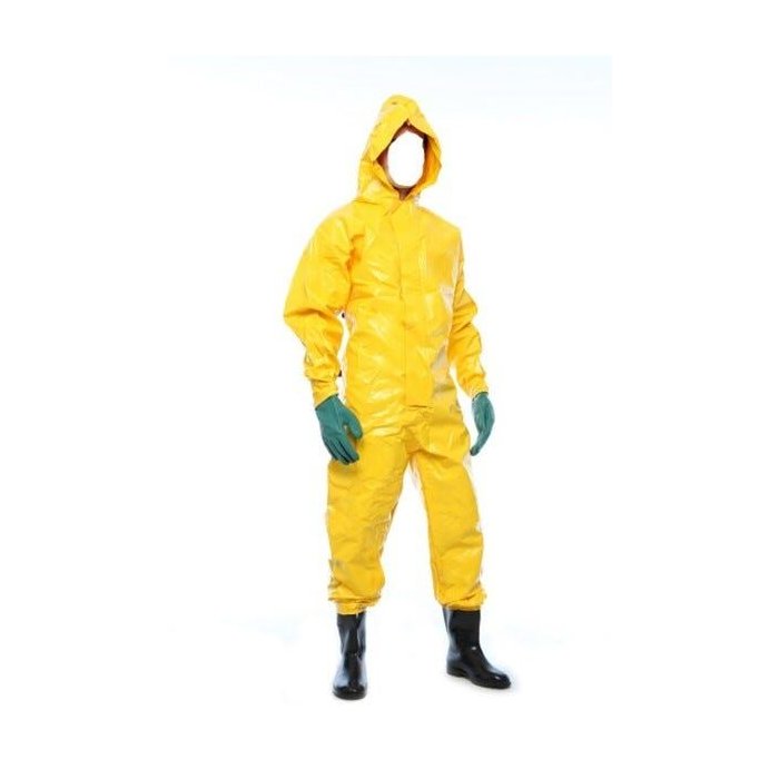 Macacão confeccionada em PVC PL500 dupla face com trama interna de nylon, fechamento em ziper e pala de velcro sobreposta, bota e luva acoplada.